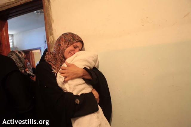One of the young Palestinian was crying. His pain seemed so deep that I could barely contain my tears. For me seing the pain of the families is tougher than to see the bodies, the living will have to live with this pain, this loss of their loved ones and they would never be the same. Their joy will never be complete, something will always be missing. I felt the tears coming in my throat but I did not let them stop me from doing what I felt I had to do. The story of these martyrs and suffering has to be told again and again until somebody listens. These deaths are not just death, there are premeditated crimes.