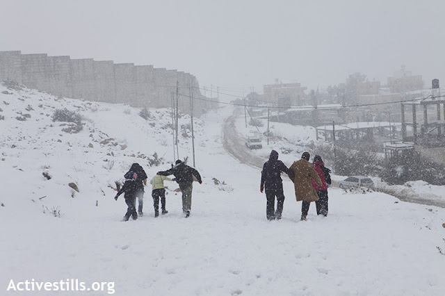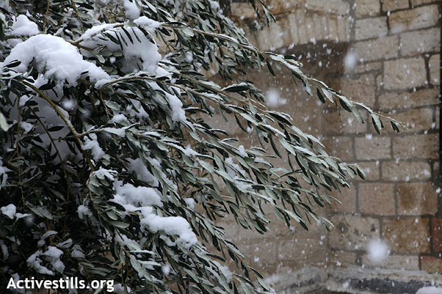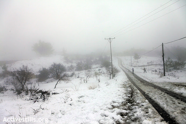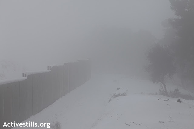 In Al Walaja there was even more snow. The Wall was disappearing a bit in the mist but for sure- still there. Some houses did not have the electricity since this morning.