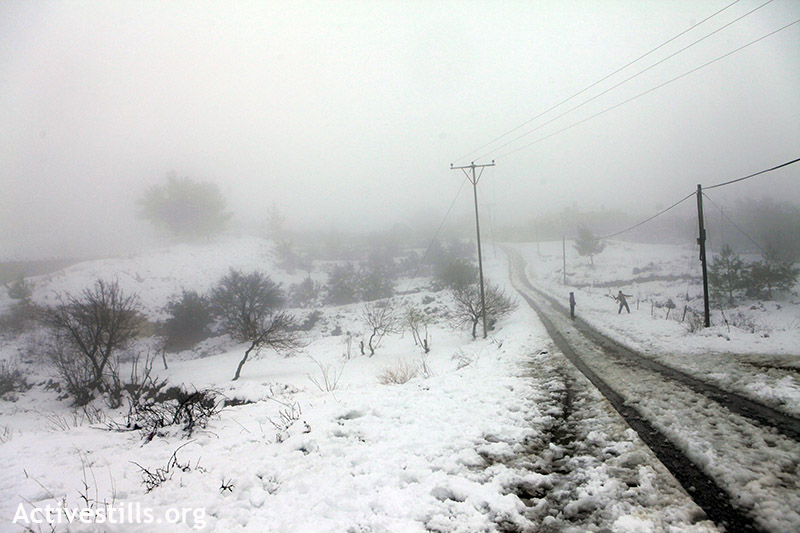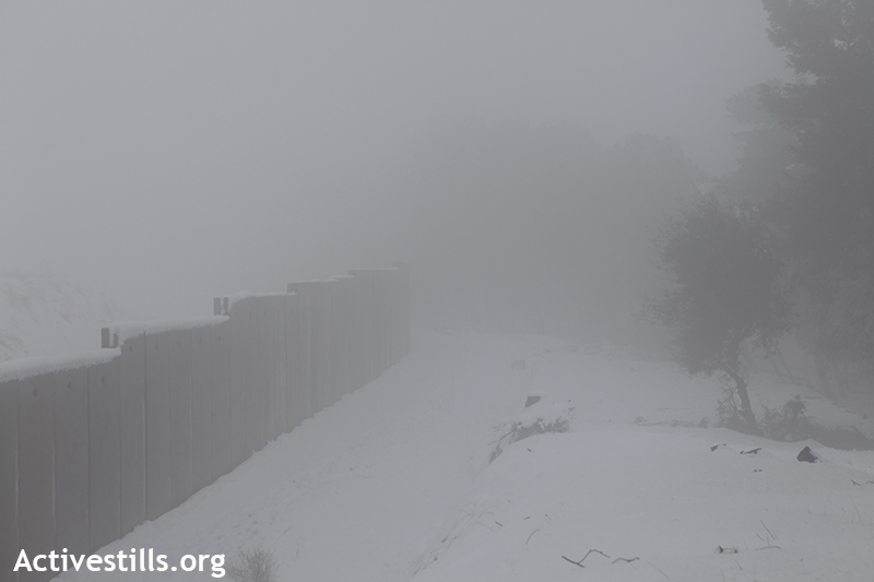 A Al Walaja il y avait encore plus de neige . Le Mur disparaissait un peu dans le brouillard, mais pour sûr, il était toujours là. Certaines maisons n’avaient pas l’électricité depuis ce matin.
